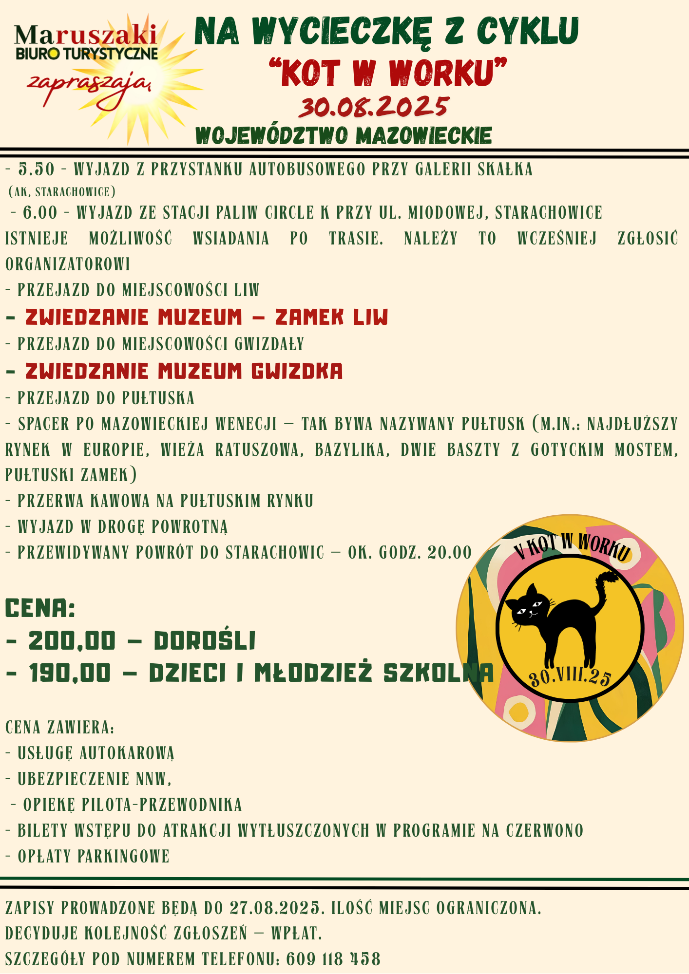 ZAPRASZA NA WYCIECZKĘ Z CYKLU „KOT W WORKU”
